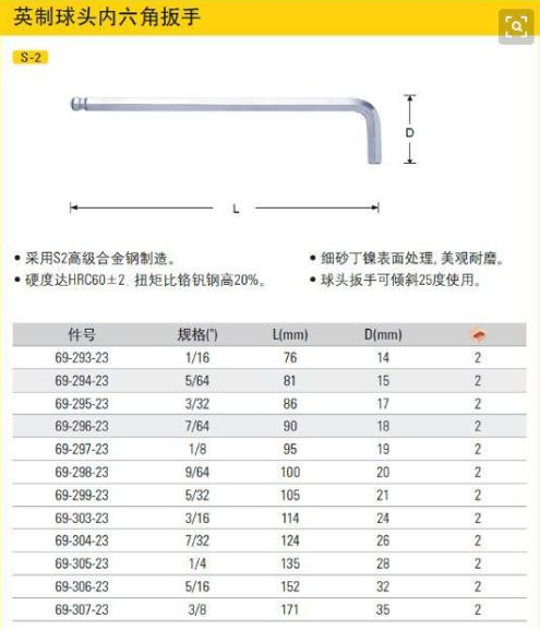 這兩種內(nèi)六角扳手除對邊和長度制式不同尺寸有些差異,外形沒有區(qū)別。
