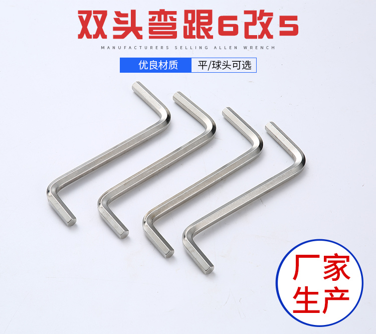 雙頭彎內六角扳手在工業(yè)生產作業(yè)中,因為管材件都是直圓管材,但是工業(yè)生產需要的配件大多數(shù)不是直管,需要用到彎管機進行彎折處理,雙頭彎以適配各種各樣的工業(yè)生產需求。